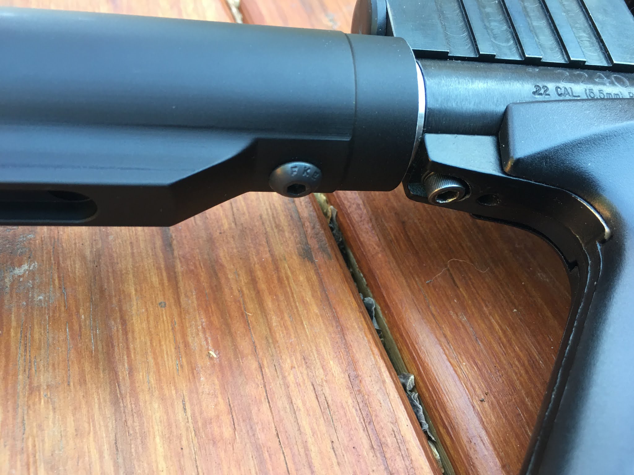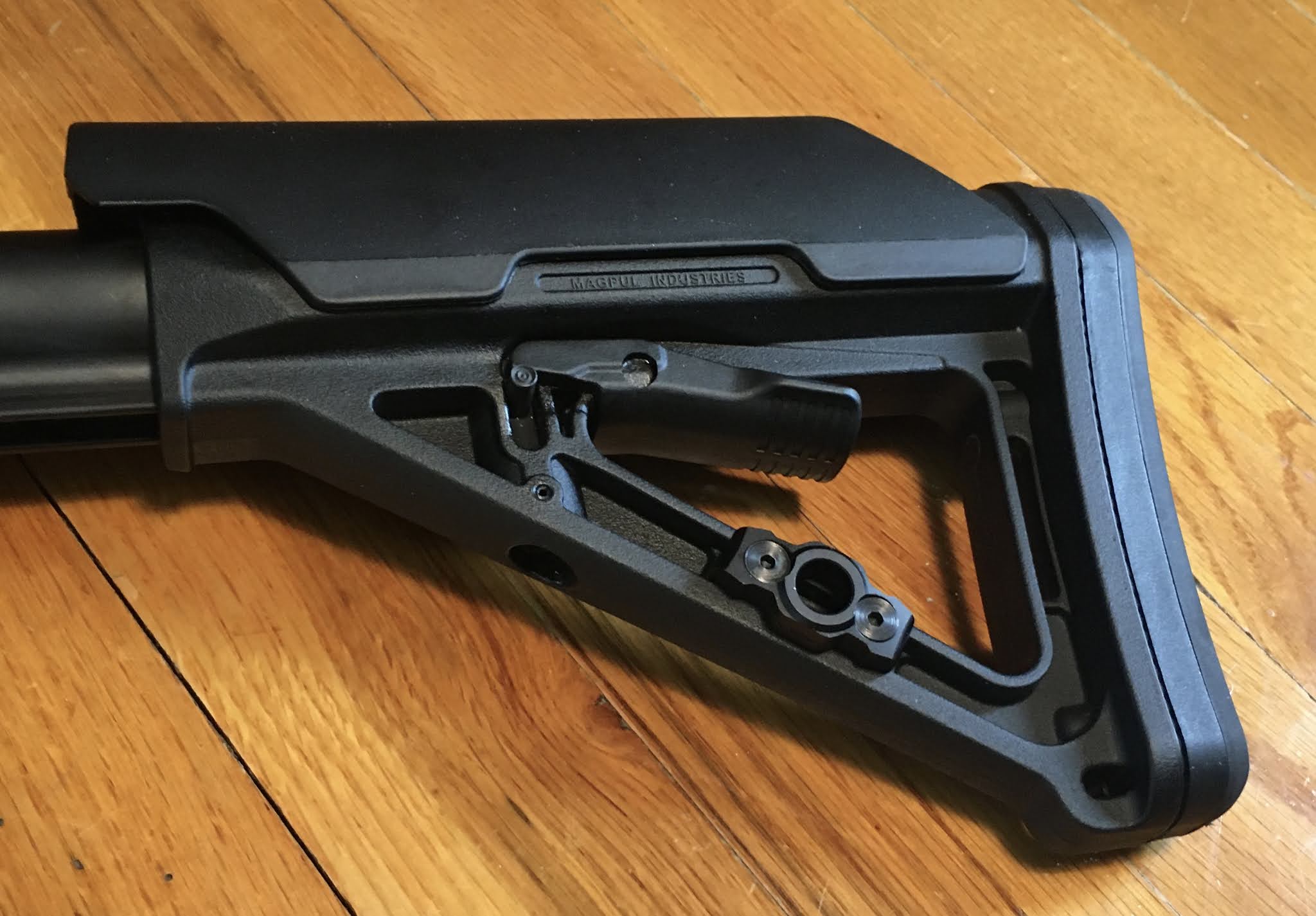 Which in turn, accepts AR-15 adjustable stocks like this Magpul MOE.